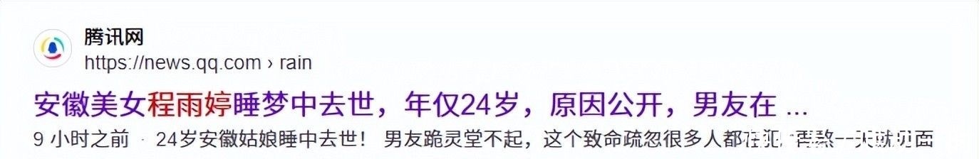 2.腾讯网:安徽美女程雨婷睡梦中去世,年岁,原因公开,男友在灵堂长跪
